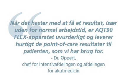 Dr. Oppert forklarer yderligere: “PCT-måling er hurtig og nem med AQT90 FLEX-apparatet. Det er ikke nødvendigt at centrifugere glasset og pipettere plasma over i en anden beholder.